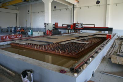 为大型等离子及火焰切割机,主要用于碳钢板、不锈钢、铜、铝等有色金属的下料加工,切割质量好,工作效率高。既没有粉尘又大大减小噪音与弧光的污染,而且切割的零件变形小。可切割200mm厚的碳钢板及80mm的不锈钢板,其跨距为6米,长共为25米。