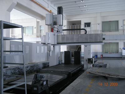 本机床为大型数控机床,其床身长6米,龙门高2.5米,适用于中型、板类、盘类、壳体、箱体、模具类等类型零件的粗、精加工,适合各种精密零件的生产。控制系统可配置为西门子等840D等数控系统,配有彩色液晶中文显示器,其测量过程实现全数控,并具有非常好的人机界面,高稳定性和高可靠性,操作方便,X、Y、Z轴均采用数字式交流伺服系统,可实现坐标轴联动加工,可进行直线和圆弧插补等等操作,零件在工作台上一次装夹后可自动完成铣、镗、钻、扩、攻丝、曲面等多种工序的加工,机床立柱、床身、滑枕、十字滑台、工作台均采用高强度铸铁材料铸造成形,其结构紧凑,具备大的承载截面,有良好的刚性和吸震性,保证了高精度加工。