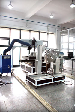 实习仪器简介:型号AHL-W400,控制电流60A~400A,脉冲宽度0.1~20ms,激光频率0.1~40Hz,电源输出功率≤12KW,最大切割厚度≤3mm,工作台最大半径为0.5米,可加工1米内3毫米以下任意形状平面金属制品及零部件,目前主要用于校工厂生产及演示教学。