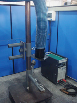 本装置配有轨道长12米,升降行程2米的龙门式行走机构。装备有1000A的焊接电源,自动埋弧焊以及焊剂回收系统等。滚轮架载重10吨,可焊接直径300-3000mm的工件。