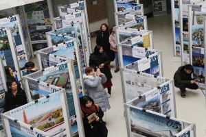 抵达后,崔博娟老师带队参观了青岛理工大学建筑系馆。建筑系学生共同观摩了设计教室、中央展厅,以及在公共走廊展示的学生优秀作品。崔老师在带领学生观摩过程中,同青岛理工大学建筑学院侯方高书记进行了学术性的探讨,并表示今后可以多增加此类交流活动,在互相学习中共同进步。随后,建筑系学生进入展览区对参加山东省优秀建筑设计方案的作品进行了参观学习。本次评选作品出自不同地区的设计院及全国各地的建筑师关于党校分校、中学改建、幼儿园、收容所、老年公寓、小区、产业示范园等不同使用功能的建筑设计进行评展,其设计方案包含了徽派建筑、现代主义建筑,以及具有中国特色的木构架建筑等不同结构和建筑材料的建筑。在本次参观过程中,同学们从中找到许多值得学习借鉴的地方,并发现很多作品的设计理念都与时俱进,尤其是与绿色、环保和节能相结合的建筑,还有以竞赛模式设计的乌托邦式建筑等。