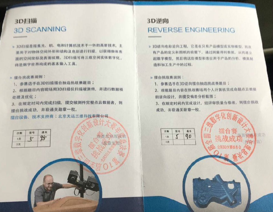 本届大会以“「数字工匠」玉汝于成,「数字工坊」溪达四海”为主题,大力培育“数字工匠(Digital Master)”,孵化“数字工坊(Digital Foundry)”,营建“数字生态(Digital Ecosystem)”。600支团队约2000余名参赛者入围总决赛。1000多家企业齐聚一堂,现场终极对决3D创新能力。其中数字工业设计赛项共有276件参加比赛,我院机电工程系有2件作品进入答辩环节,分别获得一等奖和二等奖。行业/企业热点命题“天远杯”逆向设计赛项共有39个团队进入决赛,经过三个半小时的3D扫描与逆向创新设计的现场比拼,我系获得一等奖成绩。行业/企业热点命题“数造杯”数字化创意设计与智能制造(3D)打印赛项共有76个团队进入决赛,经过六个半小时的3D创新设计和3D打印的现场比拼,我系获得二等奖成绩。另外团队成员参加了“北斗天罡”擂台挑战赛,分别参加了3D扫描、3D正向、3D逆向、3D仿真、3D打印、3D检测、3DVR七项擂台挑战赛,并以较高成绩通过。