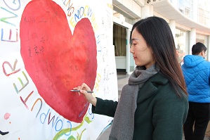 12点半,在辅导员老师的带领下,全系所有班级在中心楼前集合,有序进行捐赠。各班班长、团支书代表班级与资助中心志愿者认真进行物资交接,参与捐赠活动的师生在系部爱心留言板上留言。
