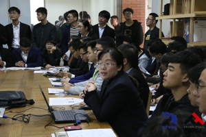 首先,现场播放了金城建设有限公司宣传视频,让在场成员从不同角度了解了公司概况。之后,公司李科长介绍了公司企业荣誉、未来发展方向,并且以现任董事长从一名技术员逐步走来成为领导者的经历,阐明了该公司职员的美好前程。李科长还介绍了公司“团结、敬业、求实、创新”的精神以及该公司理念体系、社会责任和文化活动,让同学们对金城有了全面的了解。之后的提问环节更是让同学们对薪酬、晋升、工作时间等方面有了详细了解,更加明确了同学们的就业意向。