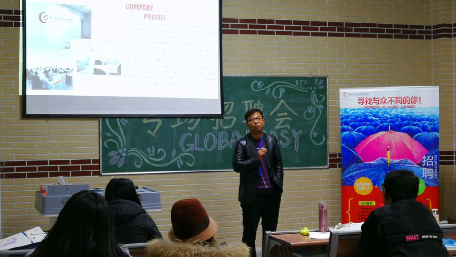 为了更好的解决大学生毕业就业难问题,缓解当今毕业生就业压力,2017年12月19日18:30外语系在九教西103教室举行专场招聘会。本次招聘会的招聘单位是青岛环球快易电子商务有限公司,外语系2018届毕业生参加。