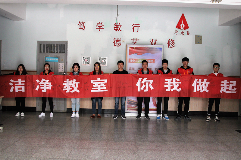 本次活动的主要目的是彻底清扫各班教室卫生,艺术系的同学们积极的参加了此次活动,如此繁重的任务下,始终相信大家只要一起努力,就没有什么不可完成的任务,艺术系同学们穿梭于每一间教室,人人参与,分工明确,同学态度认真,热情高涨,整个打扫卫生过程井然有序,看到崭新的教室,同学们内心充满了骄傲和欣慰,同时也体会到了劳动的快乐。