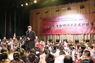 2014年11月28日13时30分,我院第七届金秋读书节系列活动——《大冰向你讲说成长的故事》,在礼堂演出大厅举行。民谣歌手、畅销书作家、著名主持人大冰莅临现场,与1000余名大学生读者进行畅聊。