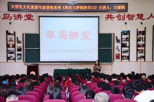 2015年5月22日下午14时,景园假日酒店人力资源部总监王丽娟女士受邀来到我院琴岛讲堂举办了一场题为《现实与梦想的关口》的专场讲座,我院图书馆馆长王株梅以及四百名大学生参加了本次讲座。