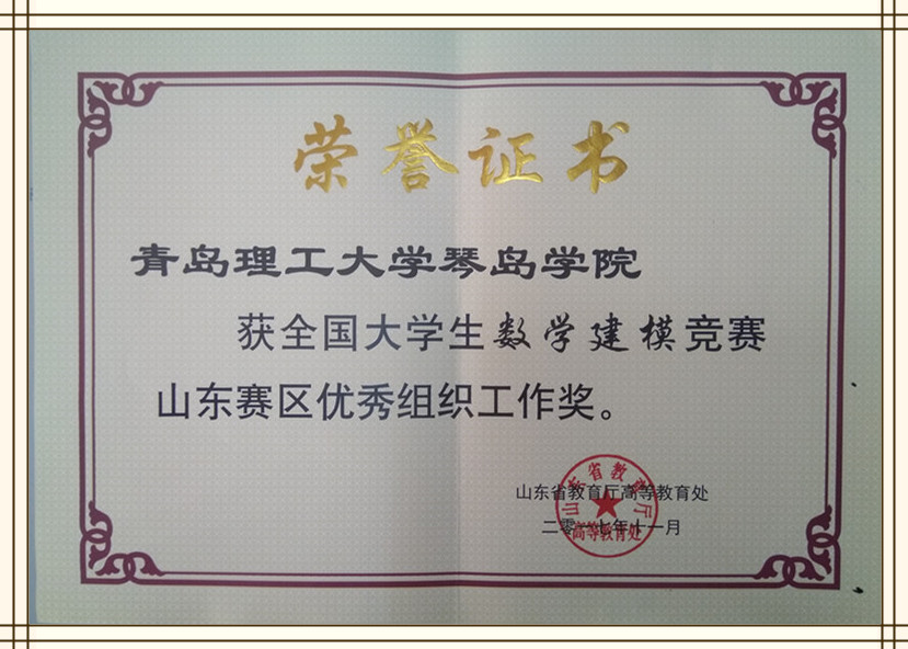 近日,2017年“高教社杯”全国大学生数学建模竞赛成绩正式公布,我院共有本专科7支队伍获奖,其中山东省一等奖4项(包括推荐国家奖1项),二等奖2项,三等奖1项。我院再次荣获“全国大学生数学建模竞赛山东赛区优秀组织工作奖”,这是在近四年中,我院第三次获此殊荣。