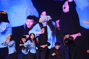 晚会的第三篇章——成长,青春修炼手册由我院学生志愿者带来的朗诵《爱心无限,志愿同行》开启。我院青年志愿服务事业发展独树一帜,“琴岛志愿者”成为我院一张靓丽的名片。志愿者们通过声情并茂的朗诵,再现了他们服务社会、服务人民的光荣瞬间,表达了他们坚持志愿服务的坚定决心,深深感染了现场的观众。留学中国部的外国留学生也在此次晚会上奉献了精彩节目,来自不同国家的他们带来了歌舞《洋气儿》,或旋律优美的歌曲演唱,或激情四射的舞蹈表演,充满异域风情和国际范儿,博得现场观众掌声一片。社团联合会DS街舞社为观众们带来了一段街舞《舞力对决》,酷炫的动作,劲爆的音乐,动感的节奏,演绎出了我院青年人的活力。今年恰逢中国人民抗日战争暨世界反法西斯战争胜利70周年,为铭记历史,缅怀先烈,经贸系师生为观众带来了大合唱《祖国不会忘记》,气势磅礴,震撼人心,每一个到场的观众均为之动容,全场气氛到达顶点。