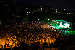 9月22日晚,“琴?你听我说”2015年迎新生文艺晚会在音乐广场隆重举行。学院党总支书记王菁华,副院长王晓元、赵连营及部分系部处室负责人出席了本次晚会,到场的还有各系部主任助理、辅导员及2015级新生和新生家长们。经过了许久的精心筹备和多次彩排,迎新生文艺晚会于当晚18点30分正式揭开了神秘面纱。晚会正式开始前,中央舞台的大屏幕上播放了一段视频,把大家的视线带到了2015级新生报到、军训、阅兵式及开学典礼的现场,在场的新生们看到熟悉的画面和身影时,在台下按捺不住地呐喊与欢呼;最后视频回顾了本次文艺晚会的筹备、彩排过程和数百名工作人员、演职人员的辛勤工作与努力付出。