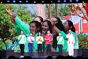 由各系学生带来的歌曲串烧开启了晚会的第二篇章——挥手,告别虎妈猫爸。舞台的大屏幕上播放了一段以“中秋,烛光里的父母”为主题的视频,视频中的人物均是在新生报到期间陪伴子女来到我院的父母们,他们谈到了自己对孩子的期望和不舍,感动了在场的新生们。接着会计系同学带来一首《烛光里的妈妈》,演唱得满含深情,直戳泪点,深深打动了现场观众的心。艺术系同学演唱的一首《月半小夜曲》,独特的粤语唱法,富有浪漫情调,出国留学部新生演唱的《南山南》让观众惊艳,建筑系同学演唱的歌曲《最后》和机电工程系新生演唱的《兄弟干杯》再次点燃观众的热情。社团联合会武术协会的同学为观众带来了武术表演《锐武琴韵》,刀、剑、双截棍轮番上阵,表演者手拿烟花动作刚劲有力,挥洒自如,中华武术的精髓可见一斑。由计算机工程系同学带来的小咖秀表演《黄河大合唱》,将最火的APP应用小咖秀搬上舞台,集体玩转小咖秀,他们超强的模仿能力、搞笑的表演动作让现场观众不时捧腹大笑。今年获得我院第六届大学生体育文化节校园啦啦操大赛冠军的土木工程系带来的啦啦操表演《Civil Time》,集青春活力与动感活泼为一体,看得现场观众眼花缭乱,目不暇接,台下掌声一片,晚会现场进入高潮。