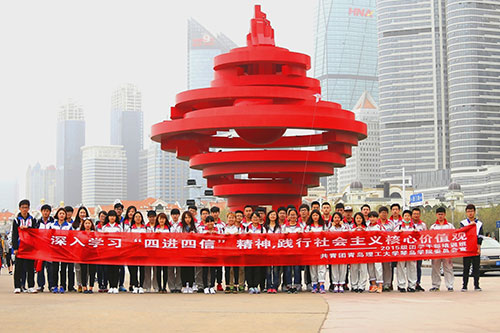 出发之前,刘龙飞老师对本次活动行程进行了简单陈述,团干部们都对本次活动充满了向往。大家先后抵达了著名的“青岛奥林匹亚帆船中心”、风景优美的“石老人海水浴场”、青岛市博物馆。团干部们参观了奥帆中心,欣赏了海景和由大自然雕琢的艺术杰作“石老人”,也看到了来自各地区特色的优秀摄影作品,古代书法、钱币等艺术品。团干部们表示,此次活动不但丰富了自己的历史知识,开阔了视野,更陶冶了文化情操。