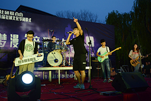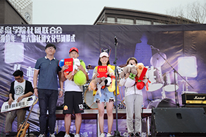 下午六点,备受瞩目的“梦漫”音乐嘉年华如期举行。来自音研社的in乐队、jr乐队和黑色幽默乐队的成员们为琴院学子带来了一场华丽的音乐盛典。晚会一开始,就吸引了600多学生驻足观看,受到现场观众的热烈欢迎。首先,由in乐队为大家带来精彩的演唱,点燃晚会现场气氛。五首歌曲结束后,主持人上台宣布本次社团文化节的一二三等奖、优秀奖、精神文明奖以及优秀组织奖。获奖队伍上台领奖,由王骞老师颁发奖品。接着,音研社成员又为大家带来了精彩的表演,台上的精彩表现与台下的喝彩欢呼相互辉映推动了本次演出的一个又一个高潮,外校嘉宾也被现场气氛以及音乐震撼,直到音乐停止才依依不舍的离开。随着本场音乐嘉年华圆满结束,第六届社团文化节闭幕式也落下帷幕。
