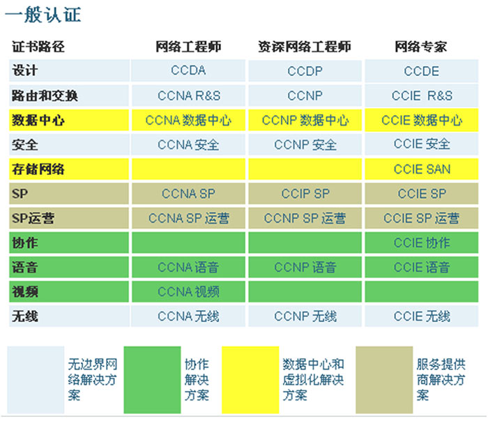 获得CCIE 路由和交换认证证明你具备对复杂整合式网络进行筹划、准备、运营、监控和故障排除的专业级技能。CCIE认证是对网络专家个人技能的最高肯定。