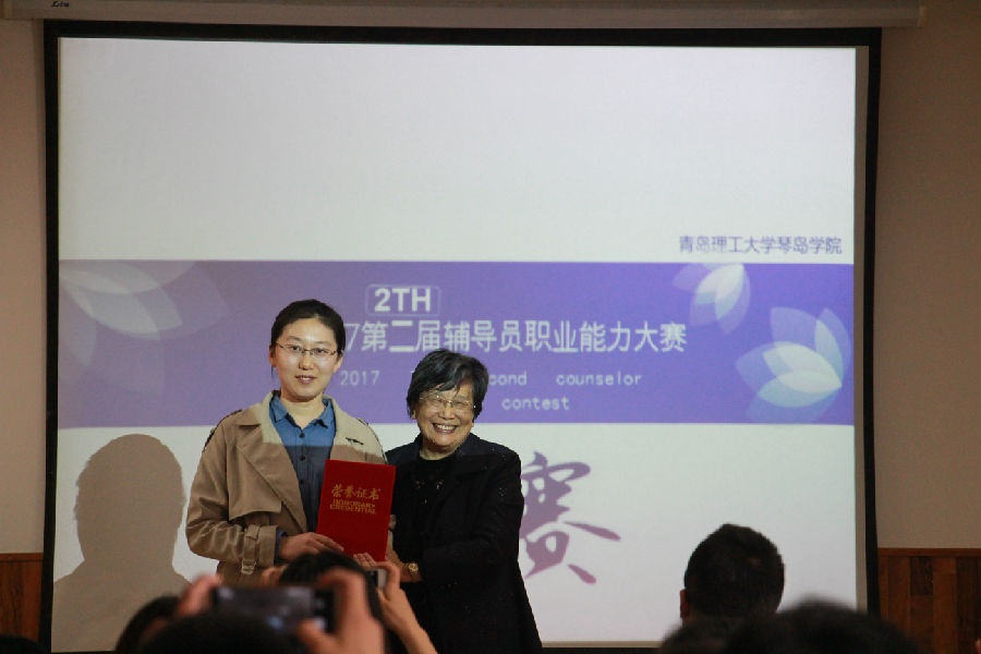 随着江孟杰老师对本次决赛比赛规则的介绍,决赛正式拉开帷幕。比赛过程中,选手们采用多媒体课件结合演讲内容,生动地展现了自己在学生工作中的经验积累和理论水平。经过紧张激烈的角逐,经贸系王路老师获一等奖;张超、黄健、孙阳老师获二等奖;孙蕾蕾、朱慧敏、易婷婷、韩英、于呈呈老师获三等奖。接着,王菁华教授以陪伴为主题为在场辅导员分享了自己精彩的学生工作经历并对赛况进行了总结和点评。最后,现场领导为获奖辅导员颁奖并合影留念。至此,第二届辅导员职业技能大赛圆满落下帷幕。
