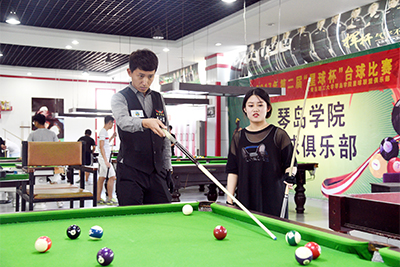 28365356体育投注台球俱乐部成立于2015年8月,设有台球训练室2个,面积约400㎡,共有16张标准美式落袋球台,环境优雅,高档音响、空调开放,并设有高级会员橱柜。琴岛学院台球俱乐部是青岛市台球协会会员单位,市台球协会常年向俱乐部提供技术支持,并组织参加省市级各项台球比赛。俱乐部组织承办院级、各系台球比赛,并积极参加国家级、省级、台球比赛荣获多次奖项:在2014年青岛市“市长杯”大学生比赛中,男子组荣获2、3、4、5名,女子组荣获2、3、4、5名; 2015年青岛市“市长杯”大学生台球比赛,男子组荣获2、3、4名,女子组荣获2、3、4、5名;2016年领队参加青岛市“市长杯”大学生台球比赛,男子组荣获第五名,女子组荣获2、3、4、5名,2017年领队参加青岛市“市长杯”大学生台球比赛,男子组荣获第5名,女子组荣获3、4、5名;2017年全国大学生台球巡回赛荣获青岛站、济南站男子第一名。